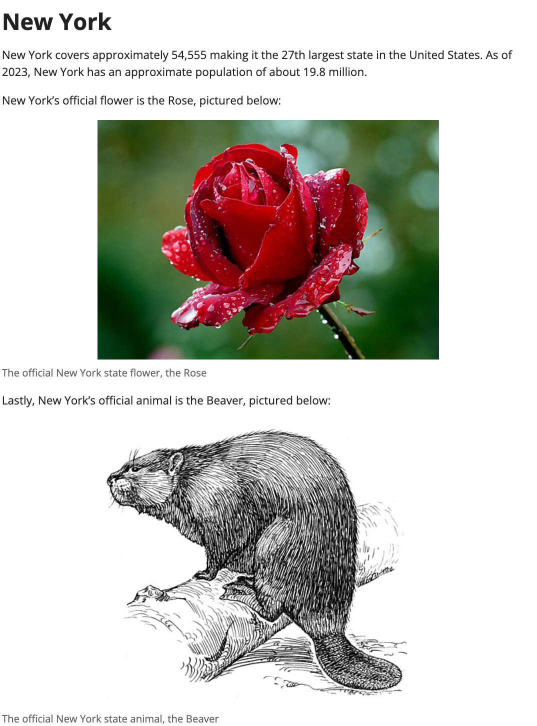 But, I would also like to add the state’s flower and animal with images of each. You can achieve this by editing the document to add this information and images: